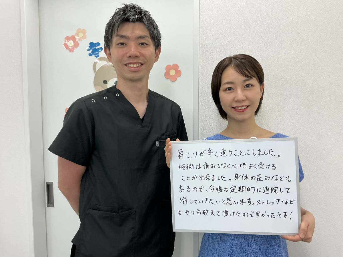 家でできるストレッチも教えて頂いたので、セルフケアもしながら今後も通院していきたいです! -